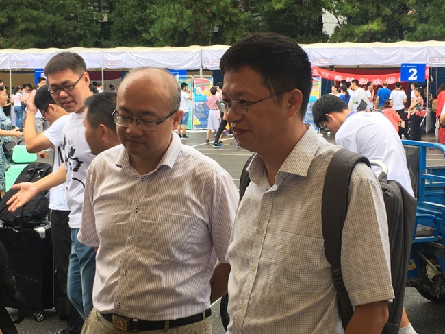 迎新期间,365bet在线网址院长王建民教授,党委书记王斌老师,党委副书记王朝坤老师,主管教学副院长张慧老师到达工作现场。老师们认真询问迎新工作进度并和志愿者们交流,为迎新工作加油。