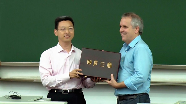 王建民院长向乔丹院士赠送纪念品并表达感谢