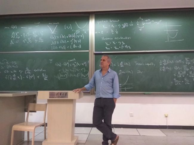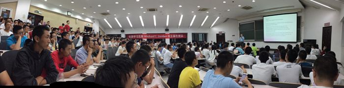 9月12至14日连续三天上午,乔丹院士在清华大学第六教学楼6A316教室为清华同学讲授《机器学习与统计优化》短期课程。课程围绕机器学习的理论和方法展开,来自软件学院、交叉信息研究院、计算机系、数学系等院系一百多名同学全程参与了本次课程。课上,乔丹院士围绕“机器学习=统计+优化”的思路,循序渐进地阐明了机器学习理论体系,讲授了统计和优化的基本方法,介绍了这两个学科中的前沿方法,展示了他领导的伯克利RISE Lab最新取得的重要成果,最后总结了机器学习前沿研究中亟待解决的开放问题,鼓励同学们对这些问题做深入思考。为了让没有相关基础的同学也能充分理解课程内容,每节课乔丹院士都手写板书,从基础知识讲起,由浅入深,旁征博引。他引人入胜的讲授为同学们勾勒了机器学习理论与方法的图景,为同学们进一步的学习和研究指明了方向。